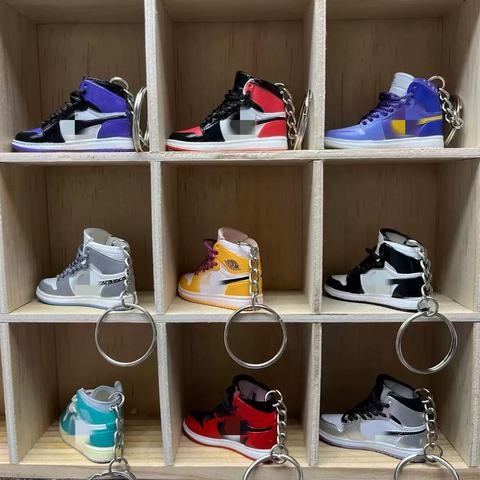 2024 ขายร้อน MINI รองเท้า 3D รองเท้าแตะรองเท้าผ้าใบพวงกุญแจรถยี่ห้อจํานวนมากรองเท้าบาสเกตบอลพวงกุญแจกล่อง
